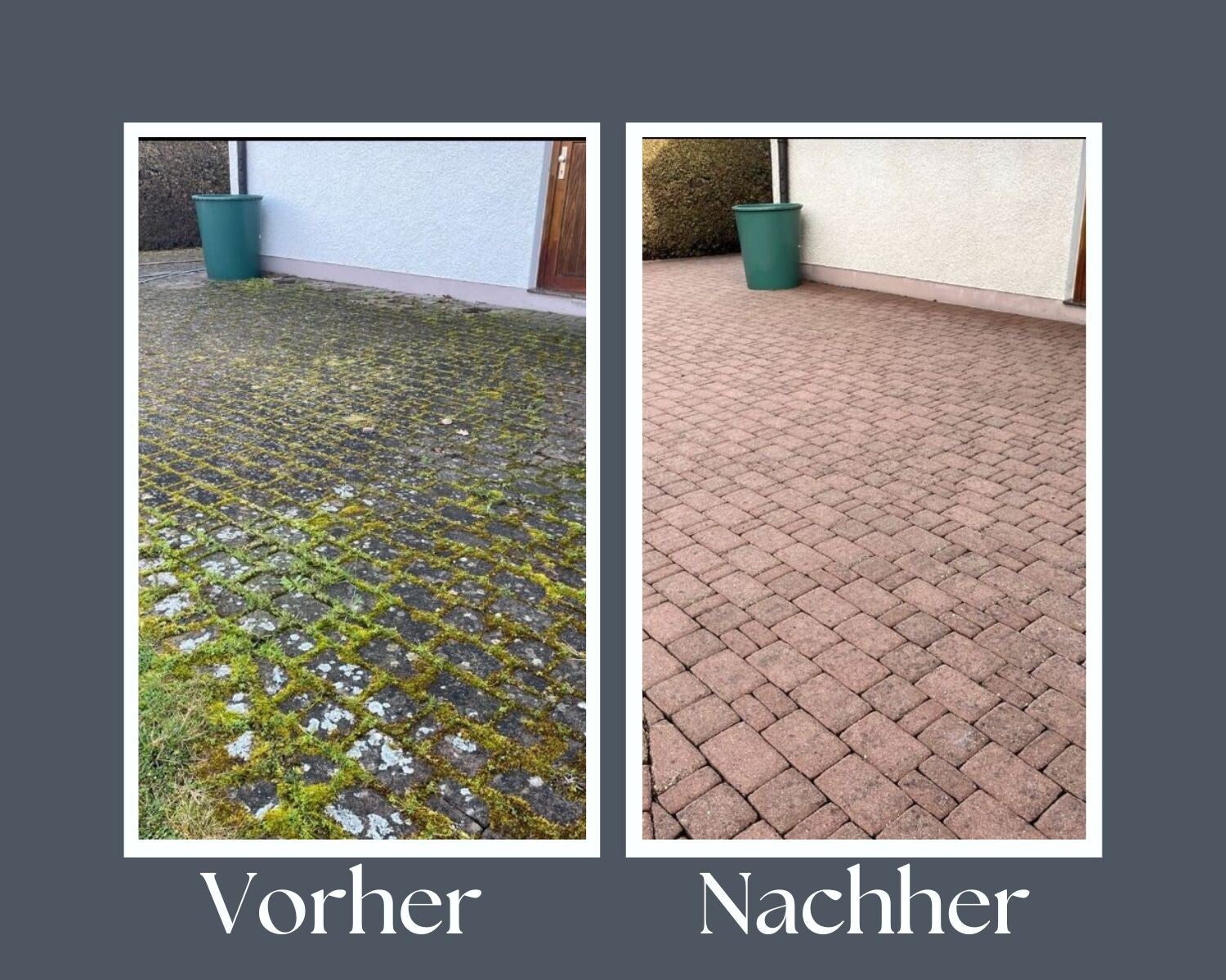 Ein gepflegtes Zuhause beginnt am Boden. Mit unserer professionellen Reinigung von Pflaster, Terrasse, Gehweg und Einfahrt entfernen wir zuverlässig Schmutz, Moos, Algen, Flechten und Verfärbungen. So sorgen wir für sichere, saubere und optisch ansprechende Flächen rund um Ihr Haus.